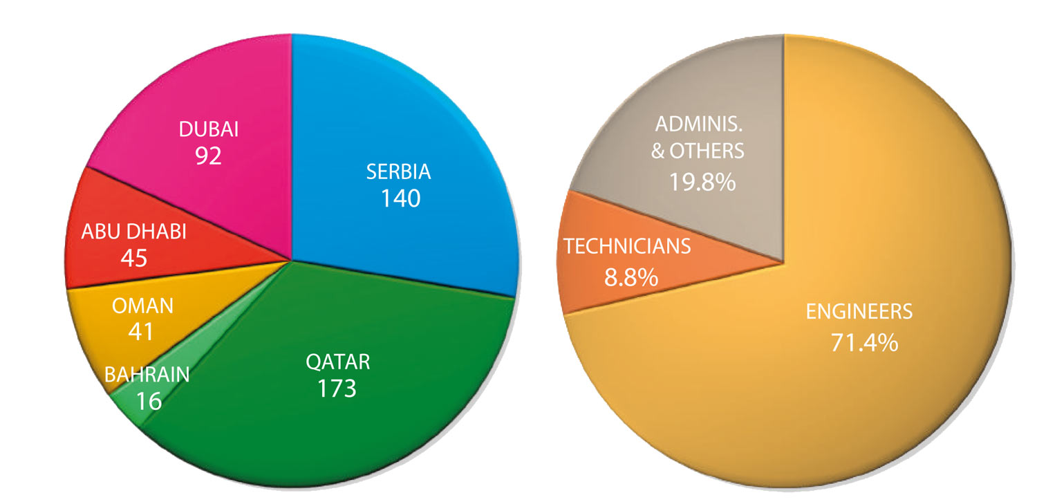 Naš stalno zaposleni kadar čine visokokvalifikovani stručnjaci različitih inženjerskih profila (mašinstvo, elektrotehnika, građevinarstvo, tehnologija) i informatike i ekonomije. Njihova stručnost, analitičke sposobnosti i organizacione veštine razvijane su kroz dugogodišnje učešće u realizaciji kapitalnih projekata iz oblasti energetike i vodoprivrede.